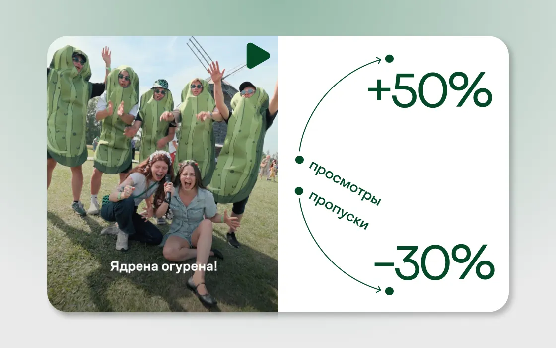 Идею с репортажами мы опробовали на фестивале огурца в Суздале и на Камышинском арбузном фестивале. Ролики дали хорошие результаты по сравнению с другими форматами в наших соцсетях: просмотры оказались выше на 50%, а смахивали их на 30% реже обычного.