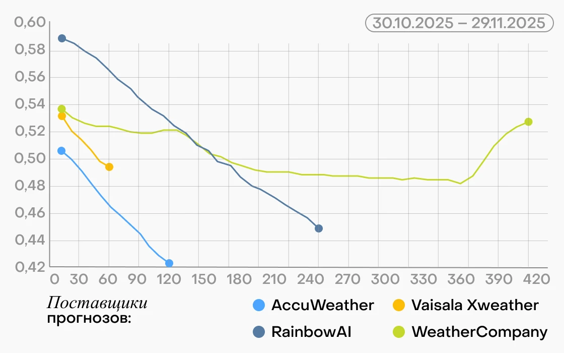 Александр: Погодных сервисов сейчас море, а вот прозрачных бенчмарков почти нет. Поэтому мы и сделали Weather Index. Это опенсорсный рейтинг: его может проверить любой, все открыто для критики и доработки. Мы сознательно не привязывали его к домену Rainbow, это такая экосистемная история, а не наш рекламный лендинг.